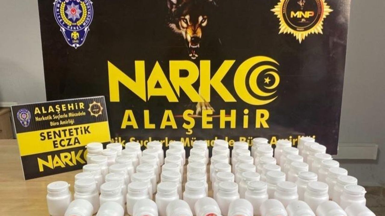 Manisa İl Emniyet Müdürlüğü Narkotik Suçlarla Mücadele Şube Müdürlüğü Alaşehir Büro Amirliği ekiplerinin yaptığı sokak çalışmaları kapsamında Alaşehir ilçesi Yeni Mahalle Mahallesinde 1 ikamet ve 1 araçta yapılan aramalarda, 75 kutu içerisinde 3 bin 952 adet sentetik ecza hapı ele geçirildi. Olayla ilgili B.Ö. (52) ve Y.G. (15) isimli şüpheli şahıslar gözaltına alındı. Emniyetteki sorguları tamamlanan B.Ö ve Y.G. çıkarıldıkları mahkeme tarafından tutuklandı.
