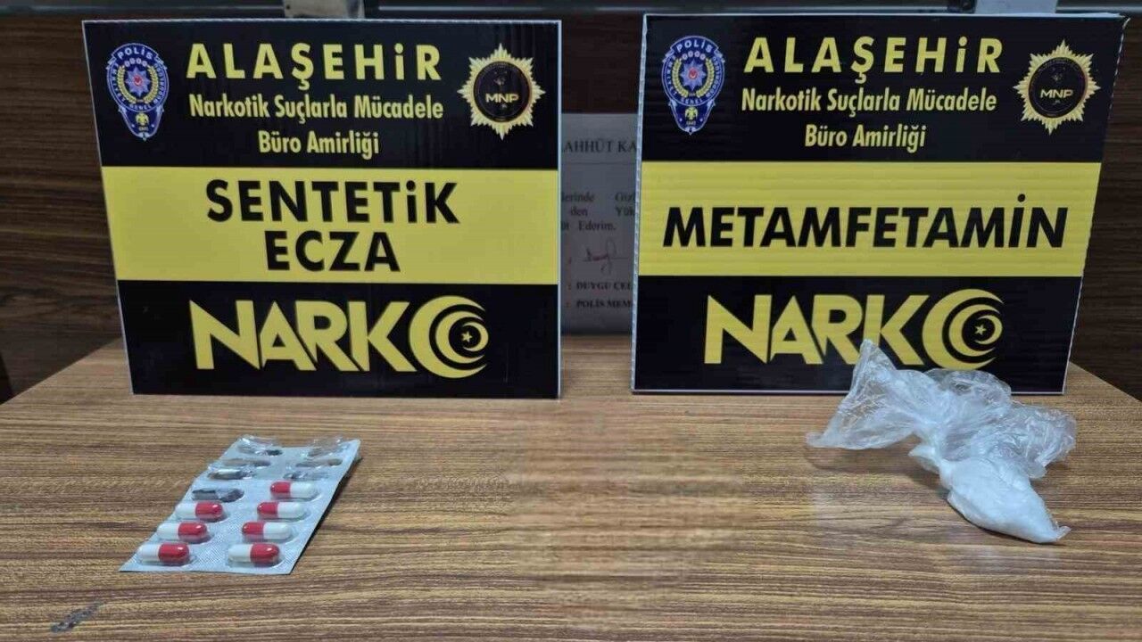 Manisa İl Emniyet Müdürlüğü Narkotik Suçlarla Mücadele Şube Müdürlüğü ve Alaşehir Narkotik Büro Amirliği ekiplerince, uyuşturucu madde ticareti yapan şahıslara yönelik yapılan çalışmalar kapsamında Akkeçili Mahallesi’nde bir araç durduruldu. Araçta ve şüpheli E.K. (23) şahsın üzerinde yapılan aramalarda 5,48 gram metamfetamin ve 3 adet sentetik ecza hapı ele geçirildi. Gözaltına alınan E.K., emniyetteki işlemlerinin ardından sevk edildiği mahkemece tutuklanarak cezaevine gönderildi.