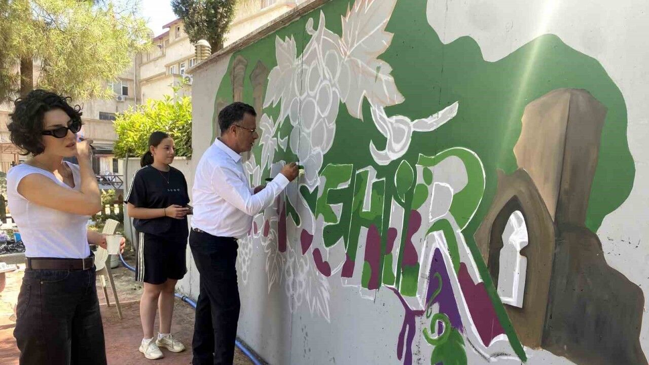 Kahramanmaraşlı Ankara Güzel Sanatlar Lisesi 12’nci sınıf öğrencisi Bengisu Polat, Alaşehir’e yaptığı ziyaret sırasında Alaşehir Kongre Parkı duvarına çizdiği resimlerle ilçenin tarihi, kültürel ve yöresel değerlerini anlattı.