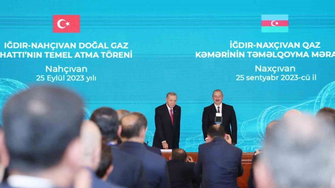 Cumhurbaşkanı Recep Tayyip Erdoğan, Azerbaycan Cumhurbaşkanı İlham Aliyev’in daveti üzerine geldiği Nahçıvan’da temaslarını sürdürüyor. Nahçıvan’da Iğdır-Nahçıvan doğalgaz boru hattının temel atma töreninin ardından Cumhurbaşkanı Recep Tayyip Erdoğan ve Azerbaycan Cumhurbaşkanı İlham Aliyev ortak basın toplantısı düzenledi. İlk sözü alan Aliyev, Erdoğan’ın Nahçıvan’ı ikinci kez ziyaret ettiğini belirterek, "Ziyarette imzalanan belgeler Türkiye-Azerbaycan ilişkilerinin geliştirilmesine hizmet edecek. Iğdır-Nahçıvan doğalgaz boru hattının inşası kardeşlik ilişkilerimizin tarihinde önemli bir olaydır ve ilişkilerimize yeni bir ivme kazandıracaktır. Nahçıvan’ın enerji güvenliği büyük ölçüde sağlanacak" ifadelerini kullandı.