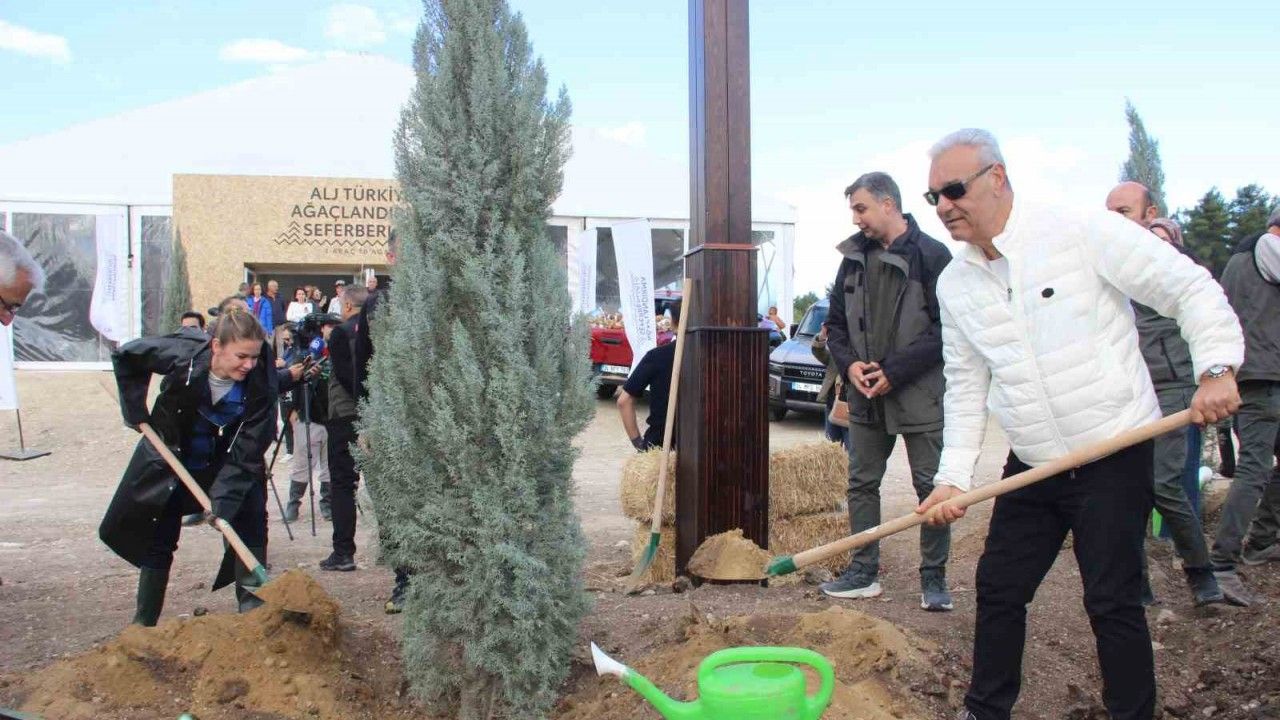 ALJ Türkiye CEO’su Ali Haydar Bozkurt, "Çok heyecanlıyız. Geçtiğimiz ağustos ayının sonunda başlattığımız ağaçlandırma seferberliği kampanyamız vardı. Satacağımız her bir araç için 10 ağaç fidanı dikeceğimizi söylemiştik. Eylül dikim döneminde 310 bin ağaca ulaştık. Bugün ilk dikim zamanı geldi. Bundan dolayı çok mutluyuz. Önümüzdeki her 6 aylık dikim döneminde yaklaşık olarak hedefimiz 650 bin fidan dikerek yılda 1 milyon ağaca ulaşmak. Bu bir yıllık seferberlik değil, bunun devamlı olmasını istiyoruz. Başka firmalara, sektörlere de ilham vermesini istiyoruz. Burcu Hanım’a çok teşekkür ediyorum. Kampanyamızın elçisi oldu. Bize büyük destek veriyorlar." şeklinde konuştu.
