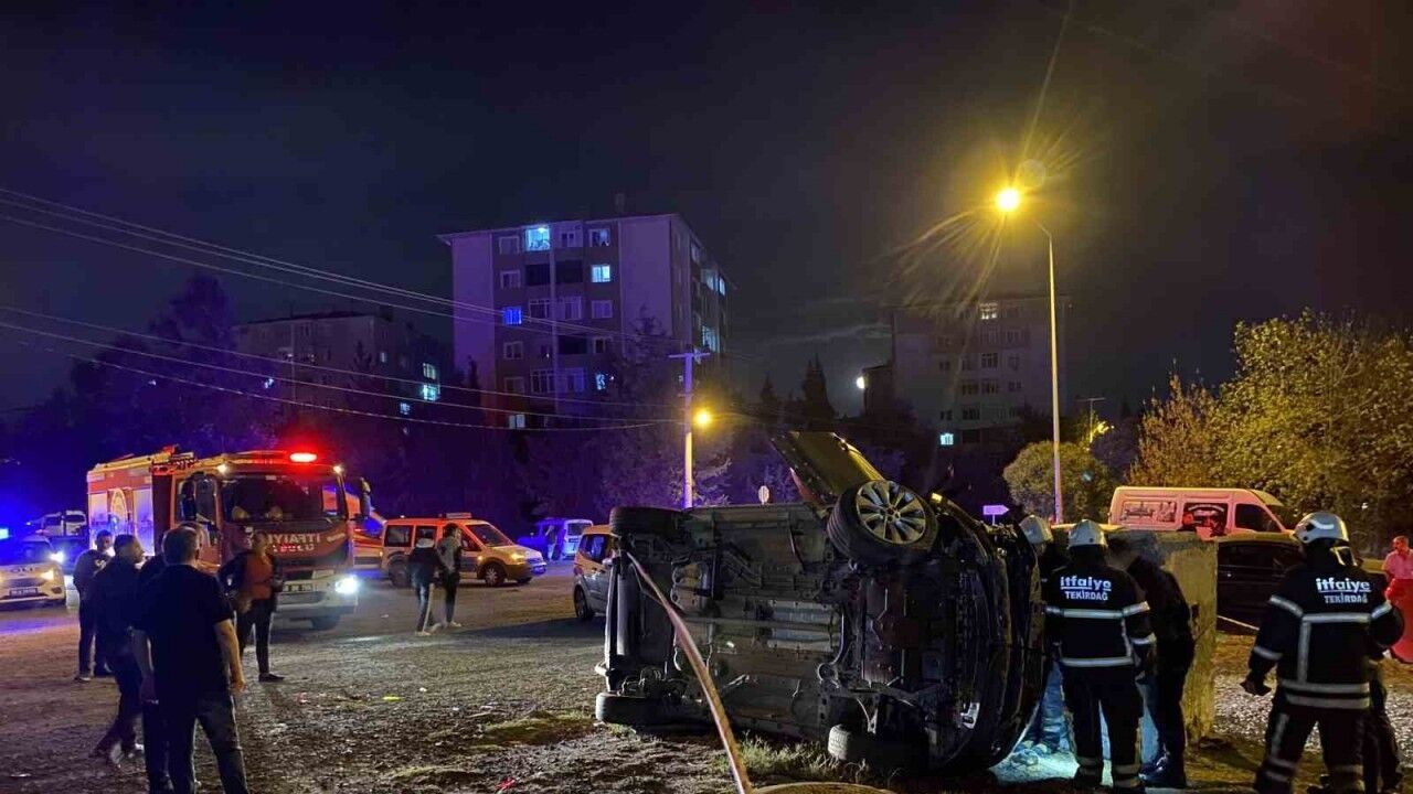 Tekirdağ Çorlu’da alkollü sürücünün kullandığı otomobil, seyir halindeki motosiklete ve otomobile daha sonra park halindeki otomobil ile beton büze çarparak devrildi. 3 kişinin yaralandığı kaza, anbean kameraya yansıdı.