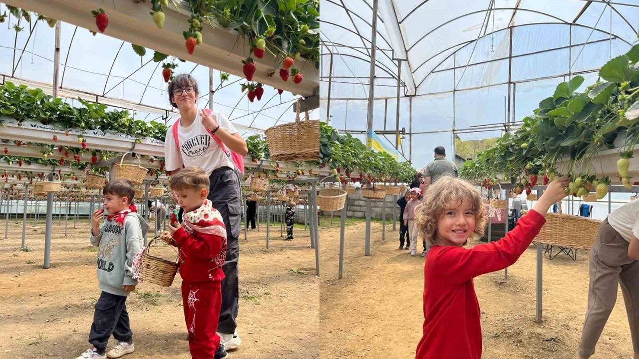 Alanya Alaaddin Keykubat Üniversitesi (ALKÜ) Uygulama Anaokulu öğrencileri, Erken Çocukluk Döneminde Çevre Eğitimi ve Okul Dışı Öğrenme Ortamları dersleri çerçevesinde fidan dikip, çilek topladı.