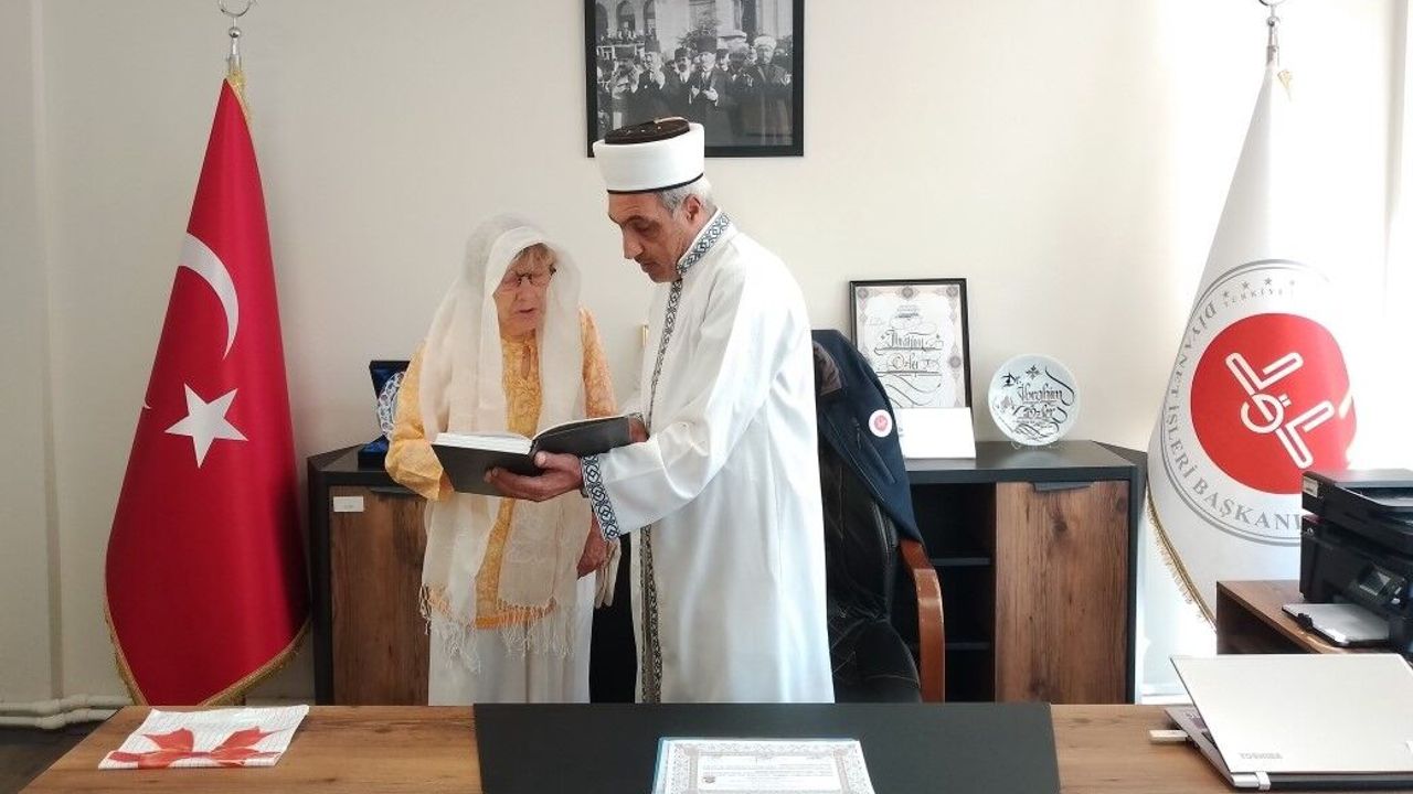 Törenin sonunda hazırlanan ihtida belgesi, Müftü Dr. İbrahim Özler tarafından kendisine takdim edildi.