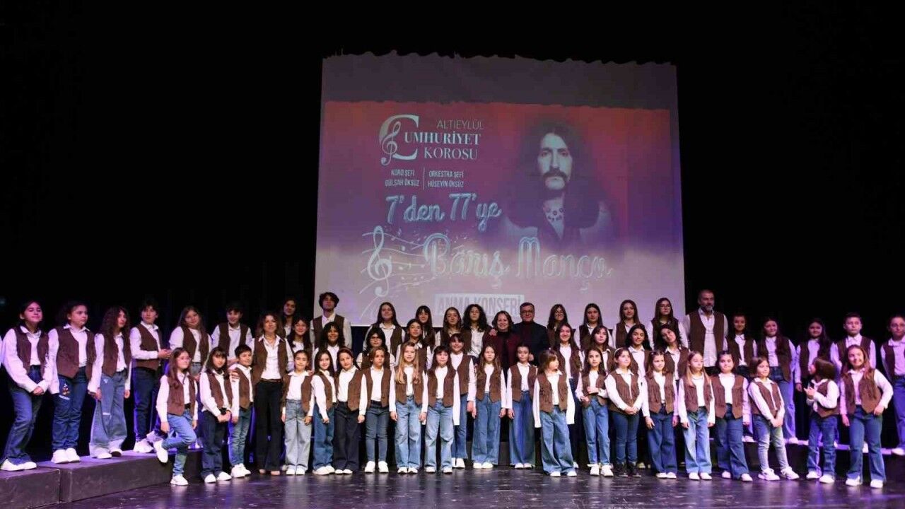 Altıeylül Belediyesinin Cumhuriyet Çocuk Korosu, usta sanatçı Barış Manço’nun vefatının 26. yılında onun eserlerini seslendirdi.