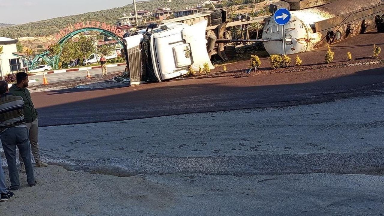 Hatay’ın Altınözü ilçesinde devrilen zeytin posası yüklü tanker sürücüsü yaralandı.