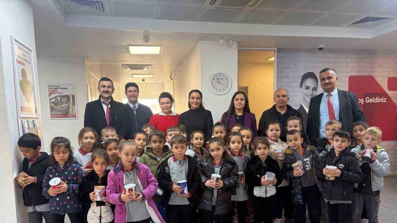 Kumbaralarını alan minik öğrenciler, tasarruf yaparak kumbaralarını doldurmaya söz verdi.