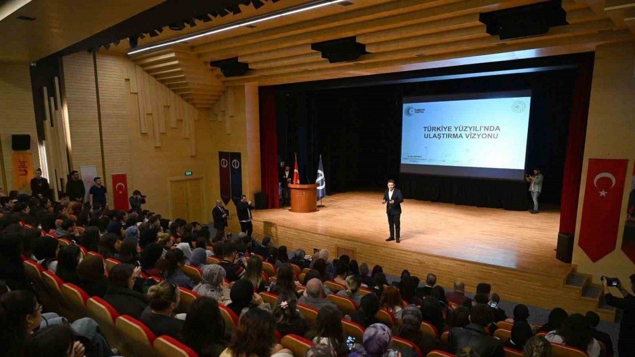 Ulaştırma ve Altyapı Bakan Yardımcısı Osman Boyraz, konuşmasında Anadolu Üniversitesi öğrencileriyle bir araya gelmekten duyduğu memnuniyeti dile getirerek Türkiye’nin son yıllarda ulaştırma alanında kaydettiği ilerlemeleri kapsamlı biçimde değerlendirdi. Ulaştırma politikalarının yalnızca teknik yatırımların değil; ekonomik, sosyal, kültürel ve stratejik dönüşümlerin de merkezinde olduğuna dikkat çeken Boyraz, Türkiye’nin jeopolitik konumunun sağladığı avantajlarla küresel ticaret yollarında vazgeçilmez bir ülke haline geldiğini vurguladı. Gençlerle kurulan iletişimin kendileri için büyük bir değer taşıdığını belirten Boyraz, üniversite buluşmalarını yalnızca bilgi aktarma süreçleri değil, aynı zamanda gençlerden beslenen karşılıklı öğrenme ortamları olarak gördüklerini ifade etti. Türkiye’nin kara, hava ve demiryolu yatırımlarındaki dönüşümün geleceğin vizyonuyla doğrudan ilişkili olduğunu söyleyen Boyraz, bu büyük dönüşümün en önemli aktörlerinin gençler olacağını belirtti. Bakan Yardımcısı Osman Boyraz konuşmasının devamında şunları söyledi: