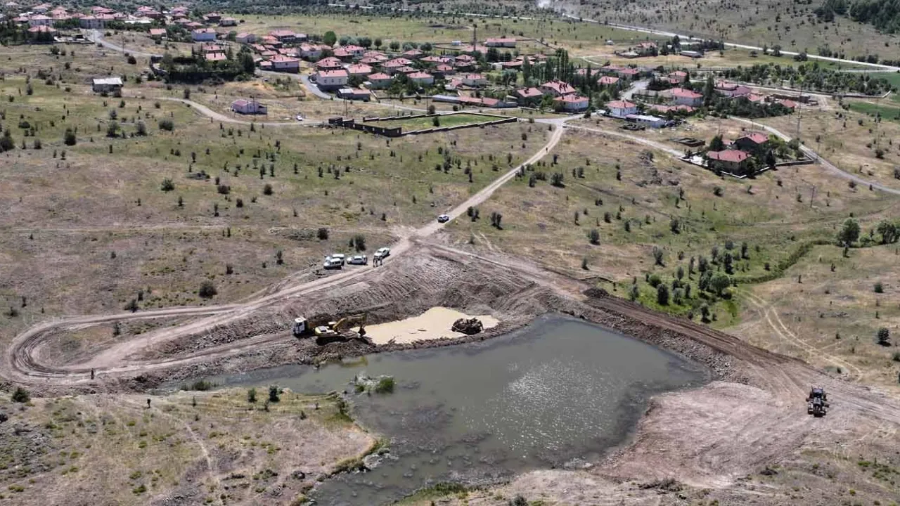 Ankara Büyükşehir Belediyesi Kırsal Hizmetler Daire Başkanlığı ekipleri, 1 dozer, 1 paletli ekskavatör, 1 loder, 1 silindir ve 2 kamyonla sürdürdüğü çalışmalarla göletin kapasitesini üç haftada üç katına çıkarmayı hedefliyor.