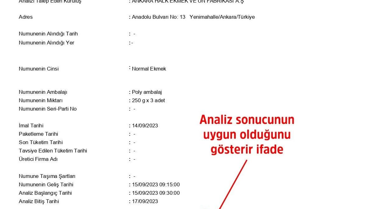 Ankara Halk Ekmek ve Un Fabrikası A.Ş., AK Parti Ankara İl Başkanı Hakan Özcan’ın ‘Üretilen ekmeklerde bakteri var’ iddiasını yayımladığı test sonuçlarıyla yalanladı.