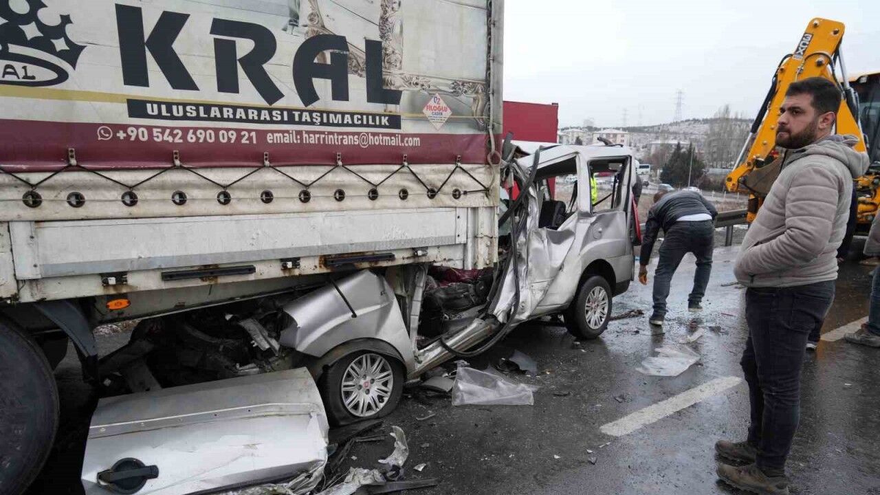 Ankara’da sıcaklıkların düşmesi ile sabah saatlerinde kar yağışı başladı. Etkili olan kar yağışı nedeniyle şehir beyaza bürünürken, trafikte aksamalar ve kazalar yaşandı. Edinilen bilgilere göre, sabah erken saatlerde V.Ç. (27), 33 E 2177 dorse ve 76 DN 841 kupa plakalı tırı yakıtı bittiği için dörtlü flaşörlerini yakarak yol kenarına çekti. Bu sırada C.S.S. (23) kontrolündeki Fiat Doblo marka araç, tıra arkadan çarparak altına girdi. İhbar üzerine olay yerine çok sayıda polis, sağlık ve itfaiye ekibi sevk edildi. Olay yerine gelen itfaiye ekiplerinin çalışmaları sonucu sürücü C.S.S. sıkıştığı yerden çıkartılarak, ambulansla hastaneye sevk edildi. Yapılan tüm müdahalelere rağmen genç kurtarılamadı. Hurdaya dönen araç ise sıkıştığı yerden vinç ile tırın kaldırılması ile çıkarıldı.