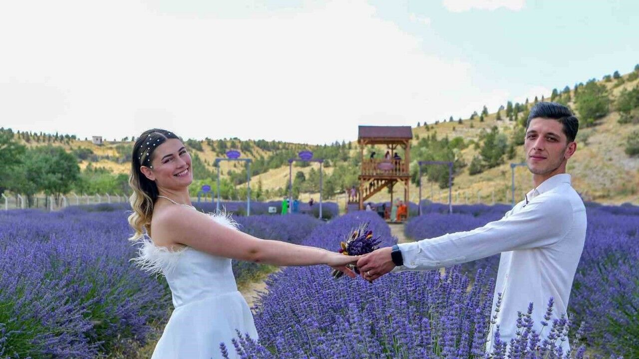 Ziyaretçi akınının yaşandığı Mamak Belediyesi Lavanta Bahçesi, evlenecek çiftlerin nikah töreni için de gözde mekanlar arasına girdi.