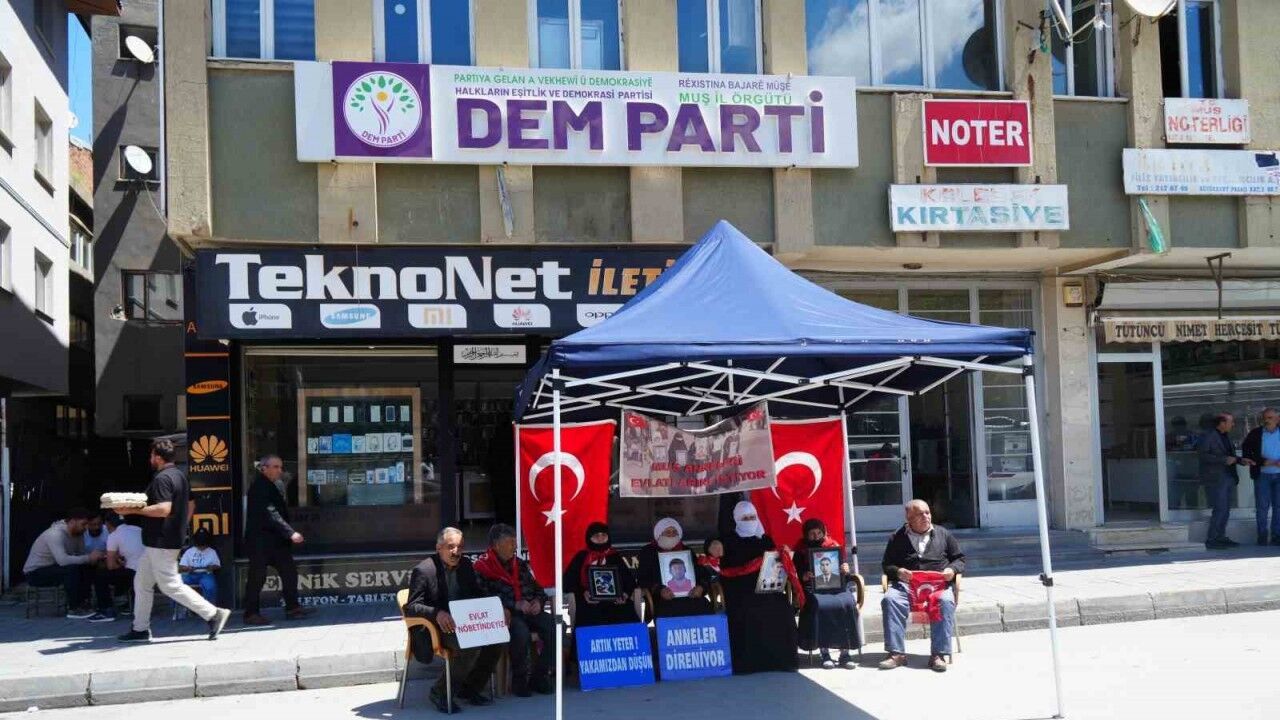 Evlatları için her hafta çarşamba günü DEM Parti önünde toplanan Muşlu aileler, terör örgütü PKK’ya karşı direnişini sürdürüyor. 197 haftadır süren nöbette gözler barış sürecine çevrildi.
