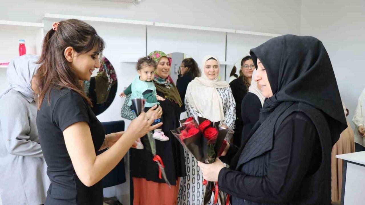 Ziyaretlerinde kadınlarla sıcak ve samimi sohbetler gerçekleştiren Fethiye Canpolat, kursiyerlere karanfil dağıtarak Anneler Günü’nü kutladı.