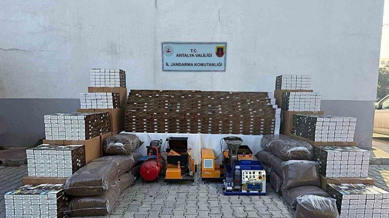 Antalya İl Jandarma Komutanlığı ekiplerince Kemer ve Konyaaltı ilçelerinde düzenlenen operasyonlarda 1 milyon doldurulmuş makaron ile büyük miktarda kaçak tütün ve sigara ele geçirildi.
