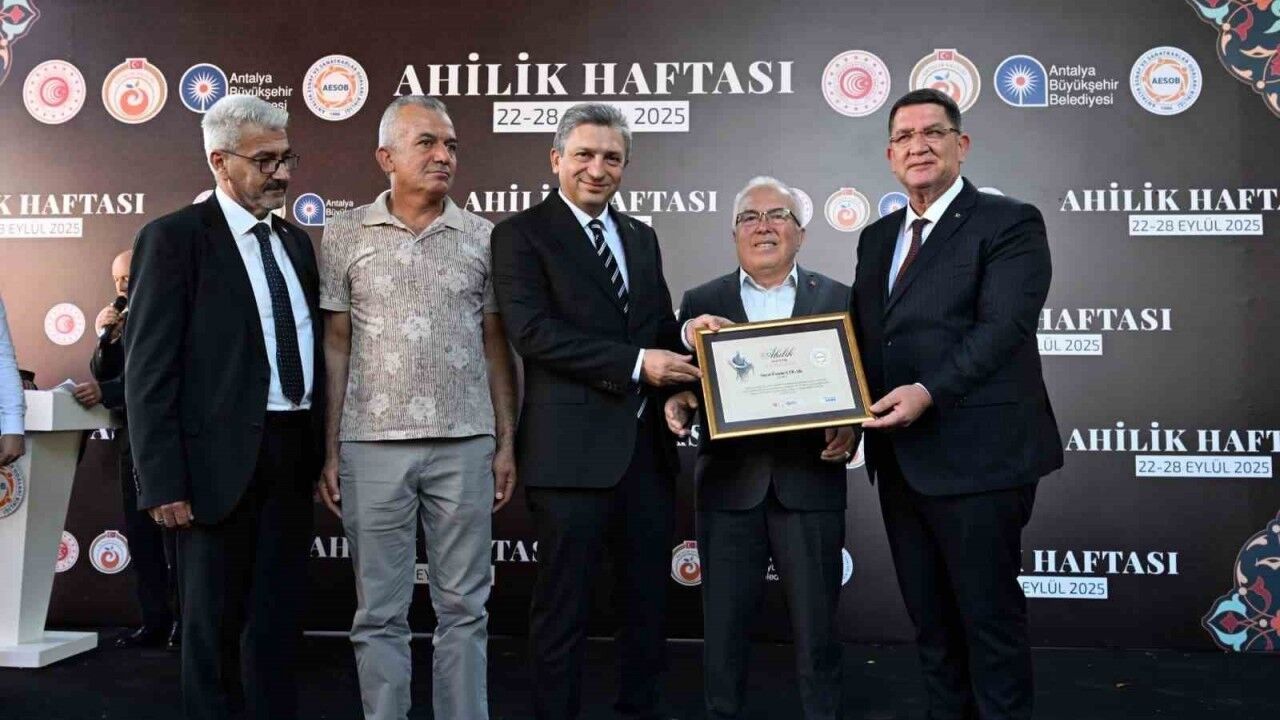 38. Ahilik Haftası kapsamında Antalya Esnaf ve Sanatkarlar Odaları Birliği’nin Ahi Meydanı’nda düzenlediği törende yılın ahileri, kalfaları ve çırakları seçildi. Saat tamircisi Üsame Çolak’a ahi kaftanı giydirilen törende; Vali Hulusi Şahin, "Bizler sadece kazanmayı değil, kazanırken paylaşmayı, yardımlaşmayı, dürüstlüğü, helalinden kazanmayı ilke edinen bir kültürün evlatlarıyız" derken, AESOB Başkanı Adlıhan Dere ise, "Ahiliğin temelinde dürüstlük, güven, emeğe saygı, dayanışma, adalet ve insan sevgisi vardır" ifadelerini kullandı.