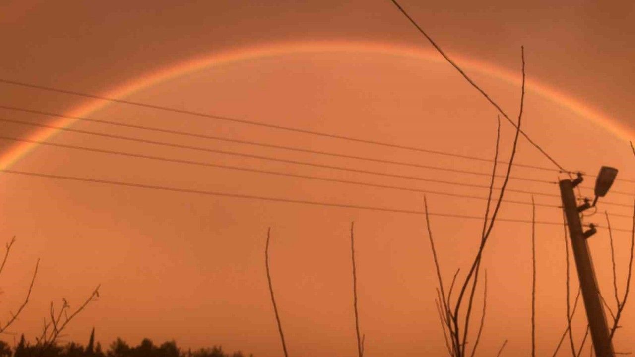 Serik Yeşilyurt Mahallesi’nde gökyüzünde iki gökkuşağını aynı anda gören çiftçi, büyük heyecan yaşadı. O anları cep telefonuyla kaydeden çiftçinin heyecanlı anlatım tarzı tebessüm ettirdi. Yağan yağmur sonrası, çifte gökkuşağını görüntüleyen çiftçi, "Görüyorsunuz anlatmaya gerek yok. Güzel bir duygu. Serik’te semalarda çift gökkuşağı. İnanılmaz anlar. Harika bir his. Bir bakın Allah ve Muhammed aşkına bir bakın. Harika, gökkuşağı tam oluştu arkadaşlar" ifadelerini kullandı.