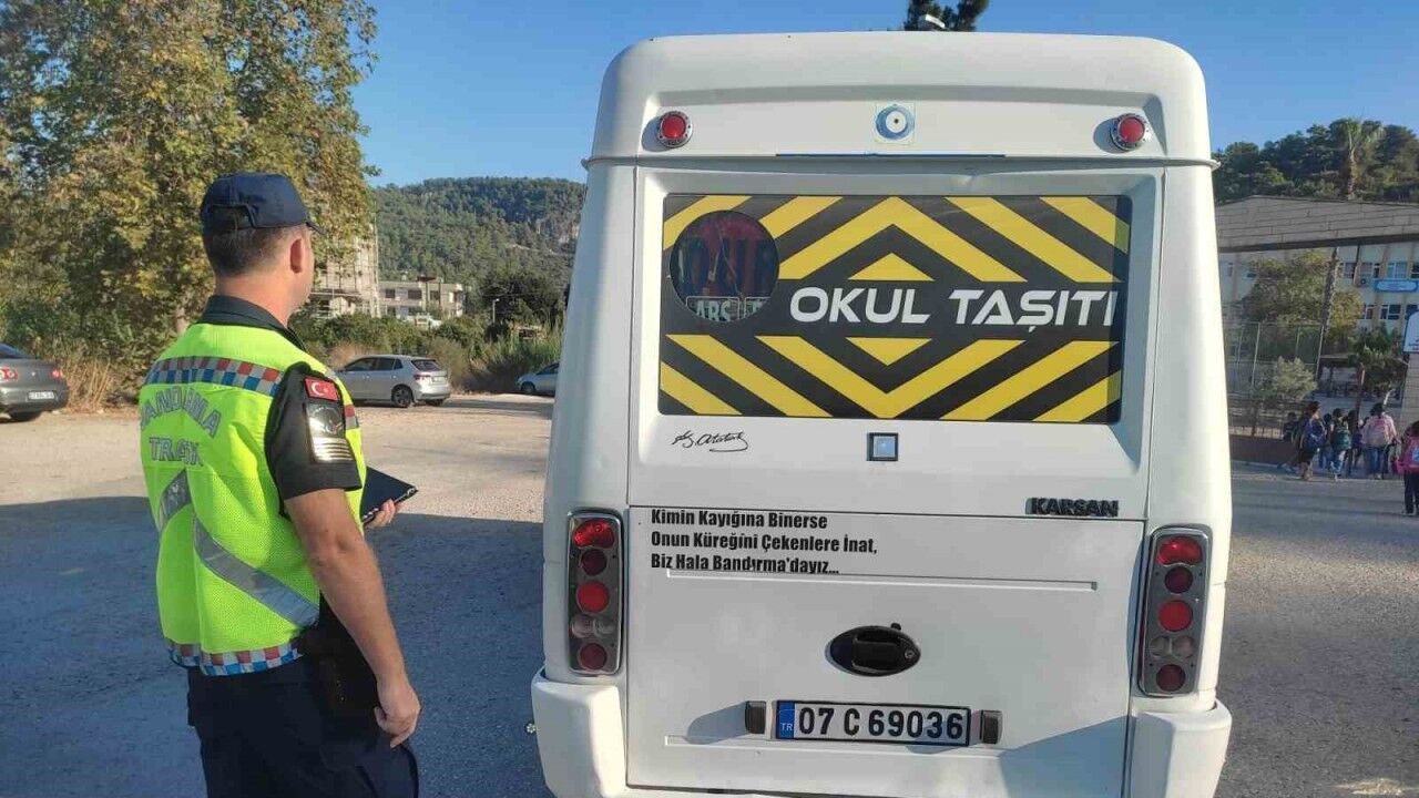Antalya’nın Kumluca ilçesinde okul servis araçları jandarma tarafından denetlendi.