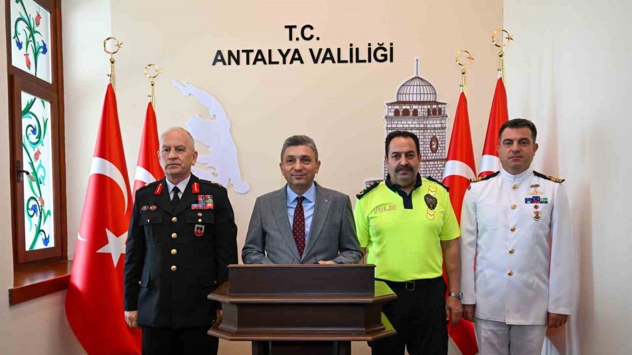 Antalya Valisi Hulusi Şahin, Nisan ayında güncel güvenlik ve asayiş olaylarına ilişkin açıklamalarda bulundu. Antalya Valiliği Hükümet Konağındaki Güvenlik ve Asayiş Bilgilendirme Toplantısı’nda Vali Şahin’e, İl Jandarma Komutanı Tuğgeneral Tarık Hekimoğlu, İl Emniyet Müdürü İlker Arslan ve Sahil Güvenlik Grup Komutanı Yarbay Tolga Coşkun eşlik etti.