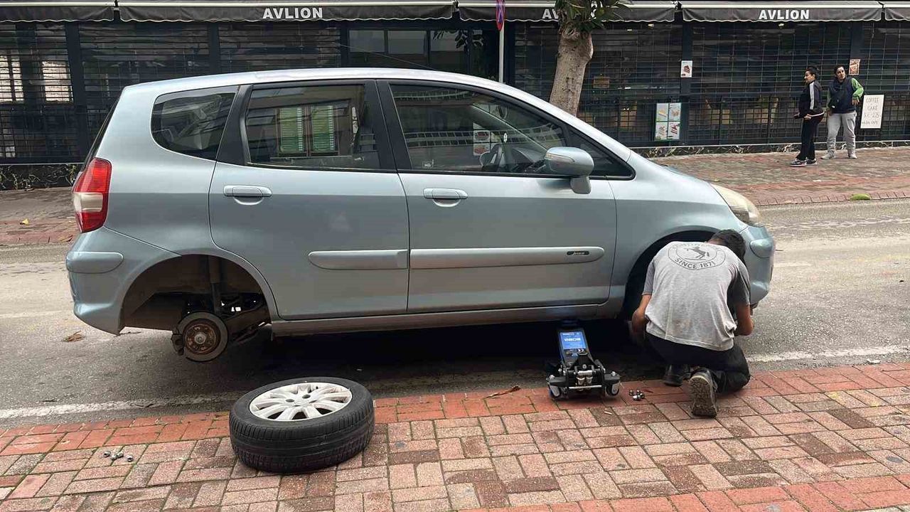 Antalya'da gece saatlerinde caddede park halinde bulunan yaklaşık 20 aracın lastikleri kesici bir aletle patlatıldığı ihbarı üzerine polis ekiplerince başlatılan çalışmada, bir şüpheli gözaltına alındı. Lastiklerin kesilme anı ise güvenlik kamerasına yansıdı.