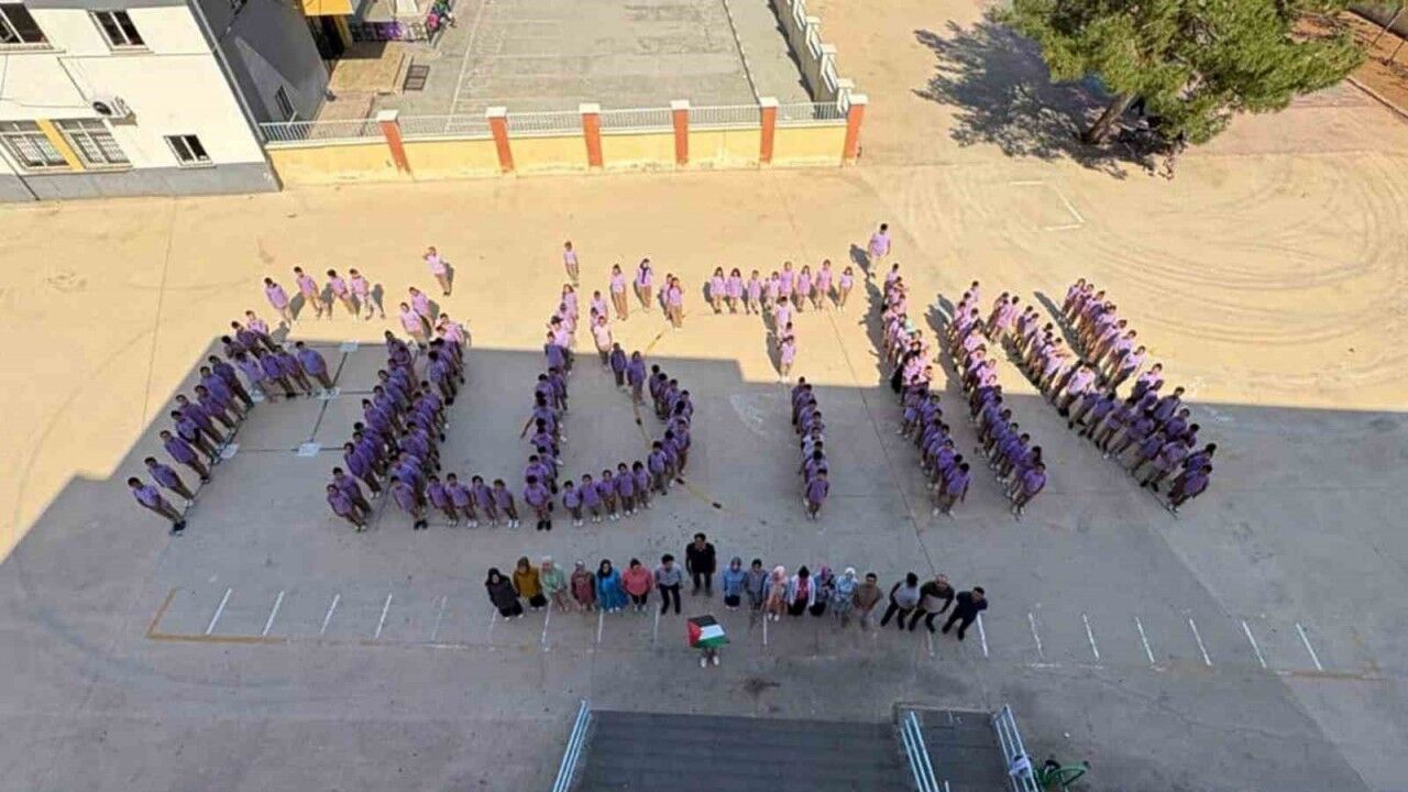 Gaziantep’in Araban ilçesindeki okullarda yapılan çeşitli etkinliklerle Filistin ve Gazze’ye destek mesajları verildi. Etkinlikler çerçevesinde, öğrenciler tarafından ’Filistin’ yazılı canlı koreografi yapıldı.