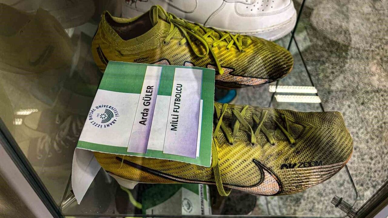 Bolu’da 250’nin üzerinde ünlünün ayakkabısının sergilendiği müzede, İspanyol devi Real Madrid’de forma giyen milli futbolcu Arda Güler’in bireysel antrenmanlarında kullandığı ve top oynamaktan yırtılan kramponları da sergilenmeye başlandı.