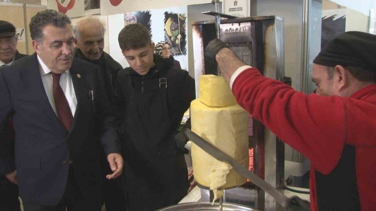 Ankara Altınpark’ta düzenlenen fuarda Ardahan ketesi, pişisi, kazı, kaşarı, coğrafi tescili balı gibi birçok yöresel lezzet başkentlilerin beğenisine sunuldu. Aynı zamanda Ardahan’a özgü kaşar döneri kesilerek fuarı ziyaret eden vatandaşlara ikram edildi. Fuar alanında tezgah açan Erdoğan Balıkçı, Ardahan kazına ilişkin, “Kazın karda bekletilmesi gerekiyor. Daha sonra en az 6 saat kaynaması lazım, yumuşak olması lazım etin. Sonrasında fırına veriyoruz, 3 saat pişiyor” dedi.
