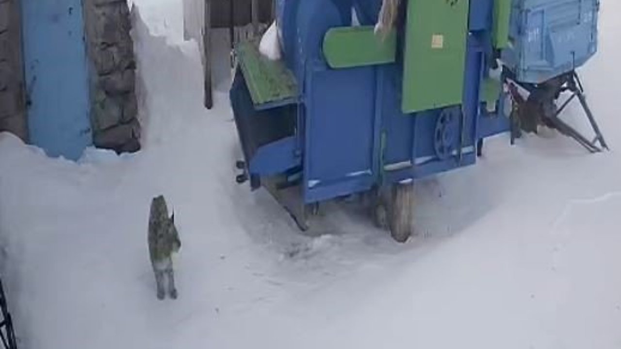 Ardahan'da olumsuz hava şartları nedeniyle aç kalan vaşak, köye indi.