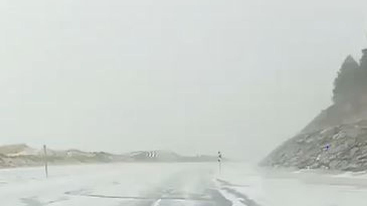 Ardahan’da etkili olan şiddetli dolu nedeniyle yollar beyaza büründü.