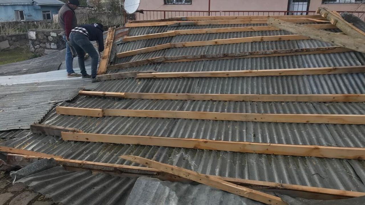 Hanak ilçesinde de etkili olan kuvvetli rüzgar bazı binaların çatılarına hasar verdi.