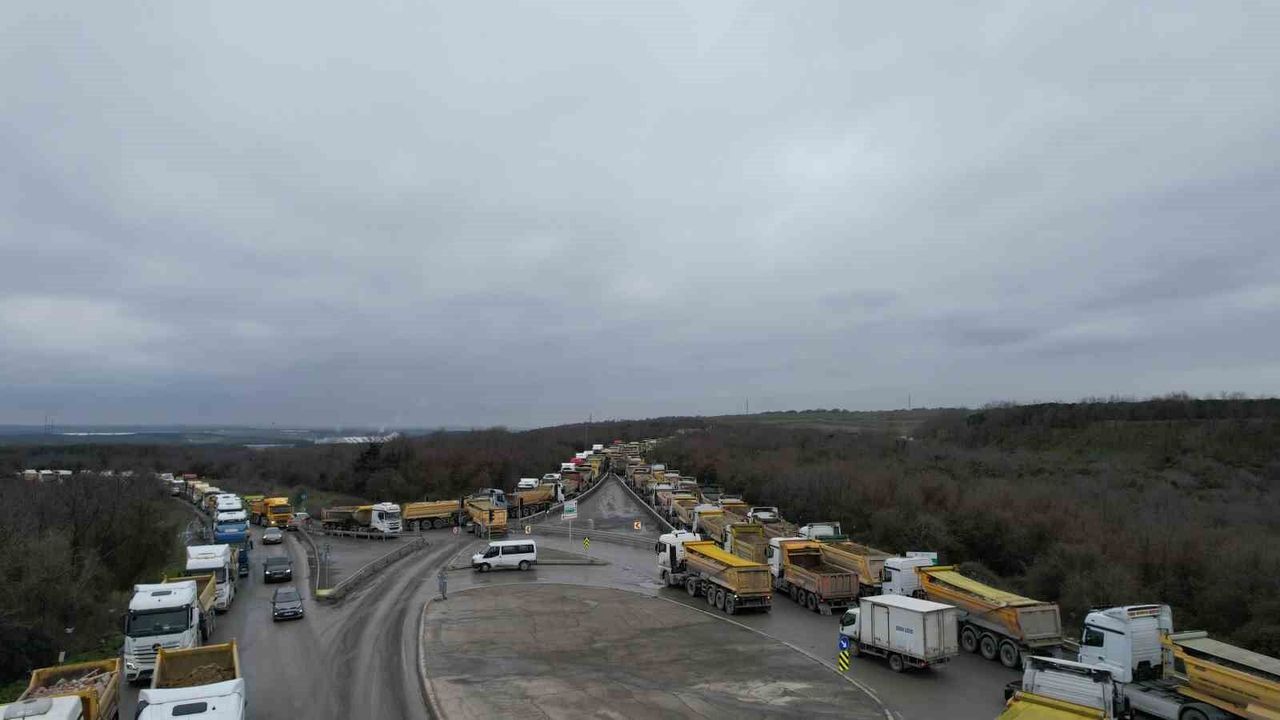 Zaman zaman çift şeritte bekleyen kamyonlar, aynı güzergâhı kullanan diğer sürücülere de zor anlar yaşattı. Sollama yapmak isteyen araçların riskli manevralar yaptığı görülürken, oluşan yoğunluk havadan görüntülendi. Bazı anlarda yolun tamamen durma noktasına geldiği görüldü.