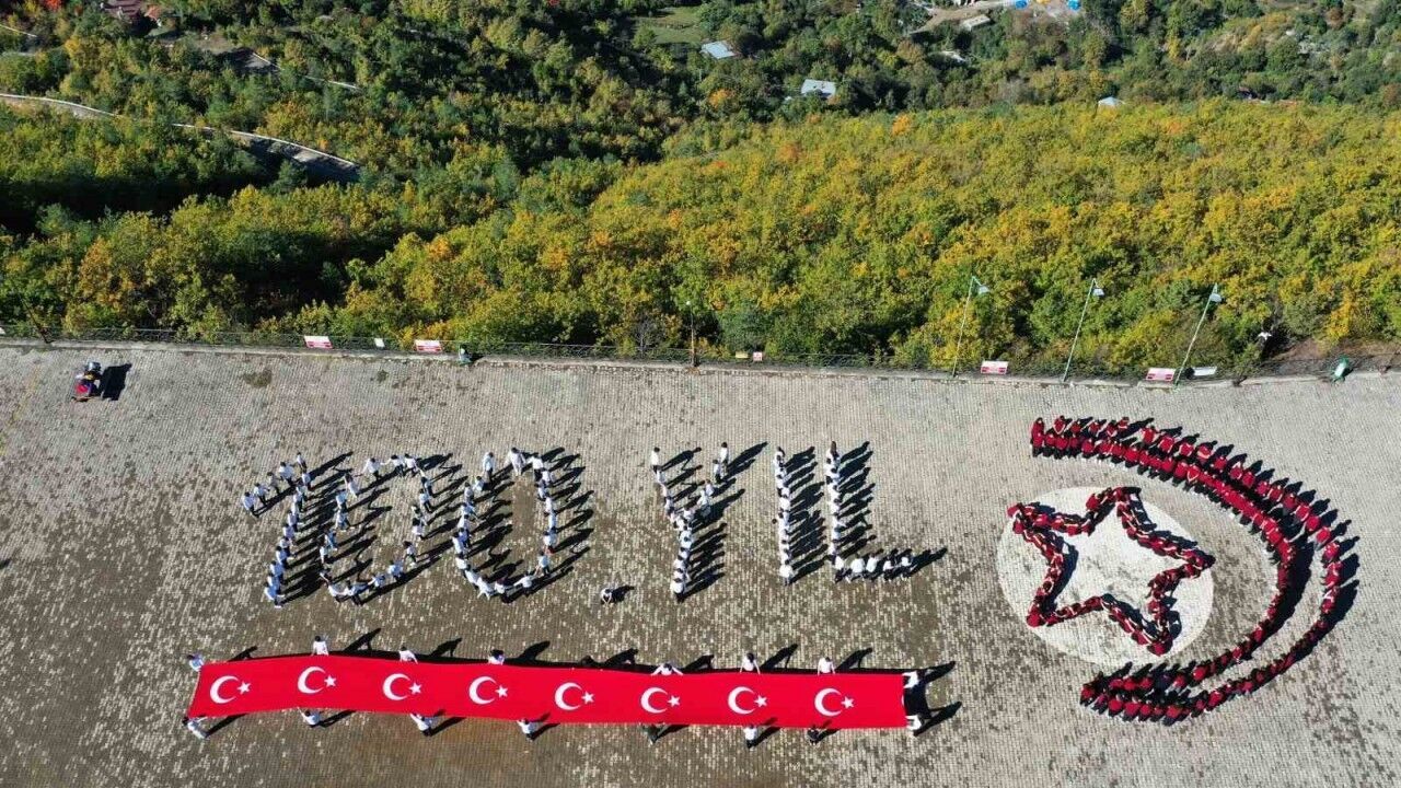 Türkiye’nin ve dünyanın en büyük Atatürk Heykeli’nin yer aldığı Atatepe’de Artvin Sosyal Bilimler Lisesi ve Yeni Mahalle Ortaokulunun ortaklaşa hazırladığı koreografi çalışmasında 240 öğrenci görev aldı.
