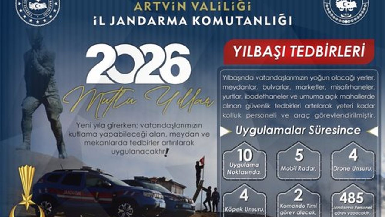 Artvin İl Jandarma Komutanlığı, vatandaşların yeni yıl kutlamalarını huzur ve güven ortamı içinde geçirebilmeleri amacıyla güvenlik tedbirlerinin en üst seviyeye çıkarıldığını duyurdu.