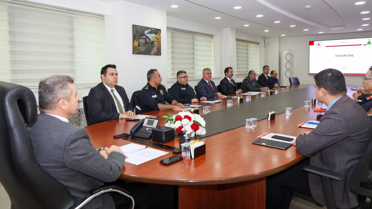 Valilik Toplantı Salonu'nda düzenlenen oturumda, il genelinde hem düzenli hem de düzensiz göç alanında yürütülen mevcut çalışmalar detaylıca masaya yatırıldı.