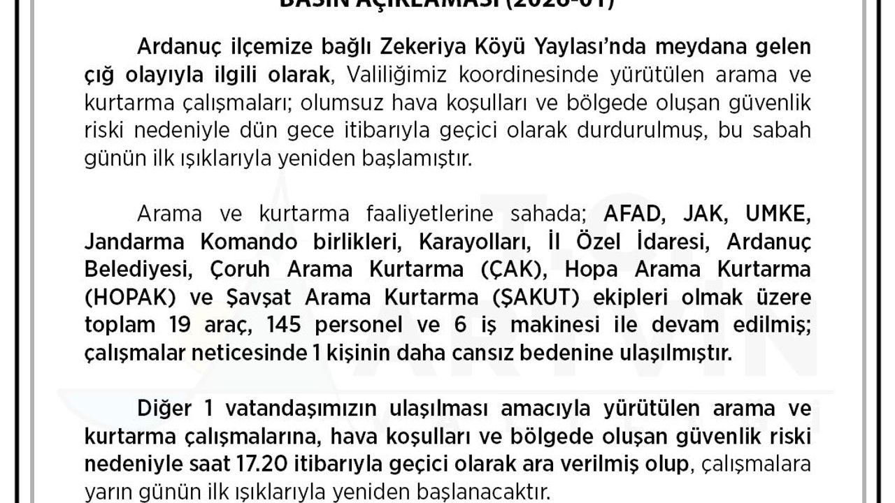 Artvin Valiliği, resmi kanalları aracılığıyla 2026 yılının başlangıcına yönelik dikkat edilmesi gereken hususlarla ilgili bir basın açıklaması yayımladı.