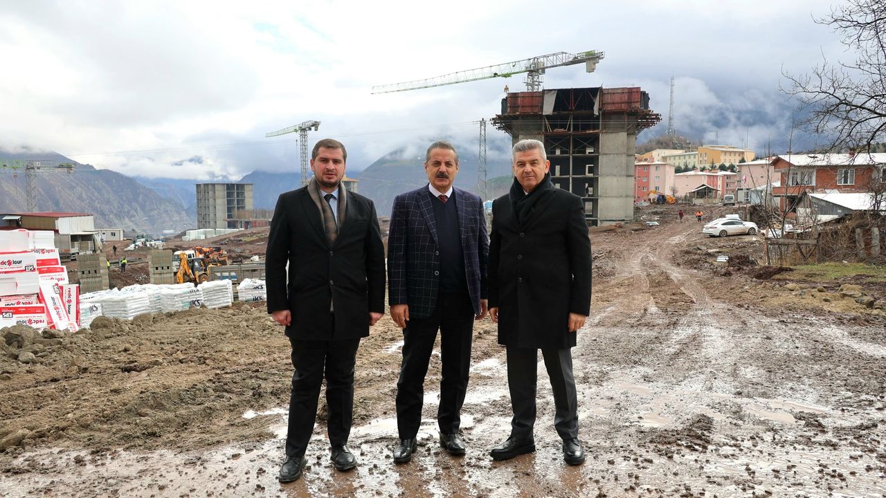Artvin Valisi Dr. Turan Ergün, yapımı süren Seyitler TOKİ Konutları inşaat alanında incelemelerde bulundu.