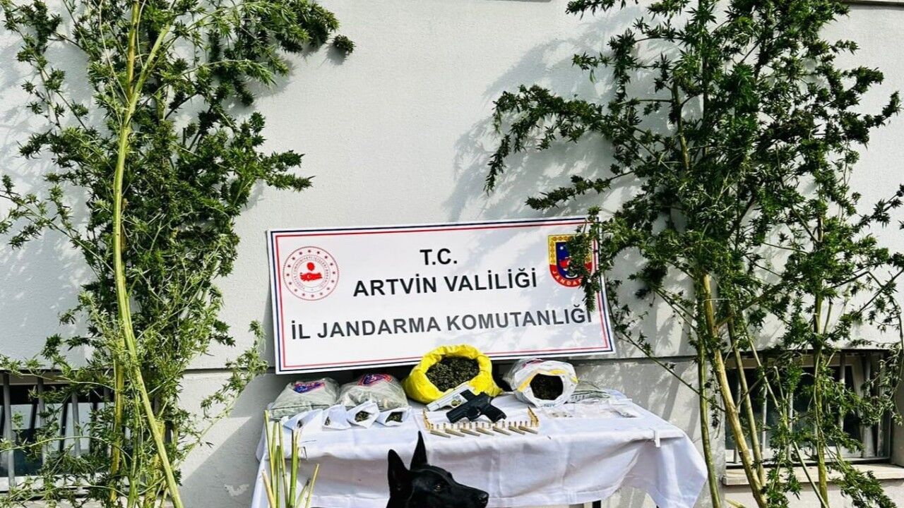 Artvin’de düzenlenen uyuşturucu operasyonunda 21 kök Hint keneviri ile 2 kilo 15 gram kubar esrar ele geçirildi.