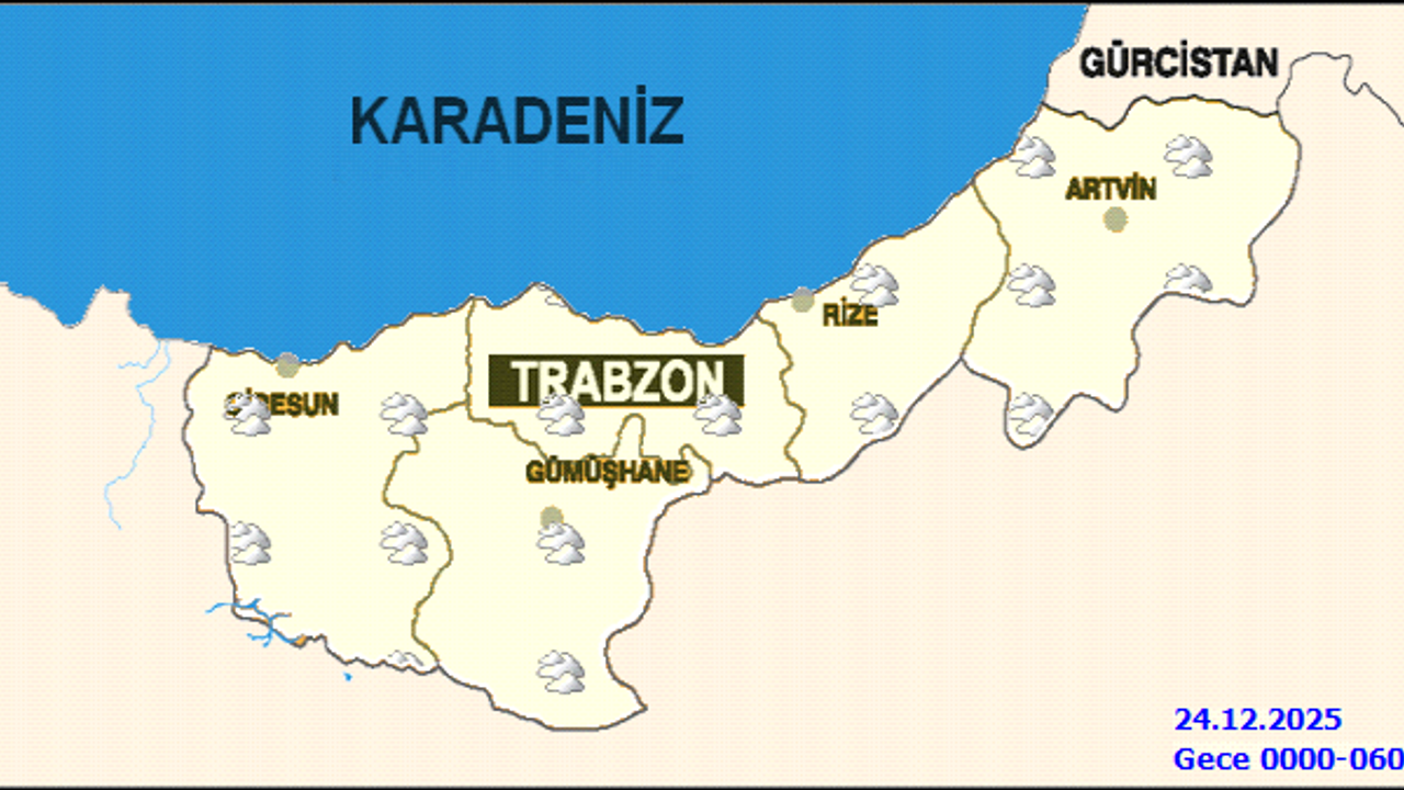 - 24-27 Aralık (Çarşamba-Cumartesi): Artvin Merkez'de peş peşe dört gün boyunca YAĞMURLU hava bekleniyor. Sıcaklıklar 3°C ile 8°C arasında dar bir aralıkta kalacak.