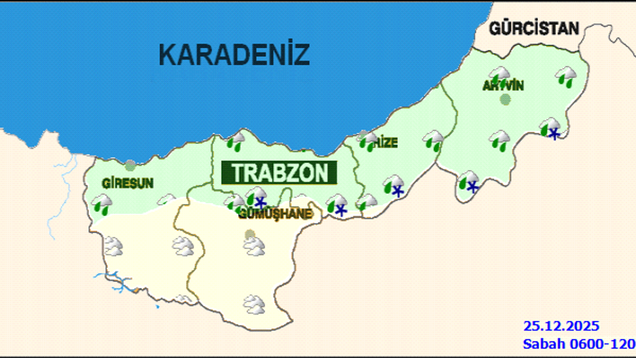 Meteoroloji Genel Müdürlüğü (MGM) Artvin Hava Durumu birimi, 25 Aralık Perşembe gününe dair detaylı hava durumu raporunu paylaştı. Rapora göre, Artvin genelinde bugün gökyüzü çok bulutlu olacak.