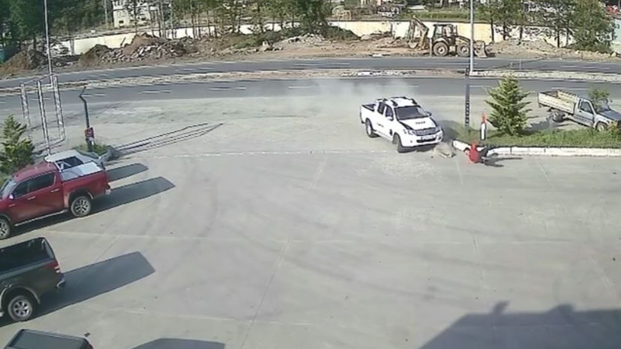 Artvin’in Hopa ilçesinde bir akaryakıt istasyonu çalışanı, kontrolden çıkan bir kamyonetin çarpması sonucu yaralandı. Kaza anı güvenlik kamerasına yansıdı.