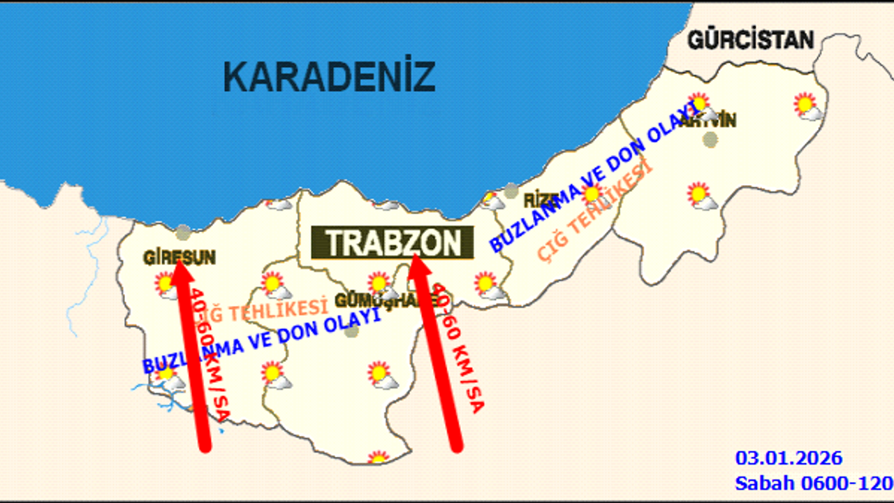 Hava sıcaklıklarının genel olarak mevsim normallerinin altında seyredeceği belirtilirken, özellikle yüksek kesimlerde buzlanma ve don olayı riski vatandaşları uyarıyor. Rüzgarın güney yönlerden orta kuvvette esmesi, Giresun ve Trabzon çevrelerinde ise yer yer fırtına şeklinde etkili olması öngörülüyor.