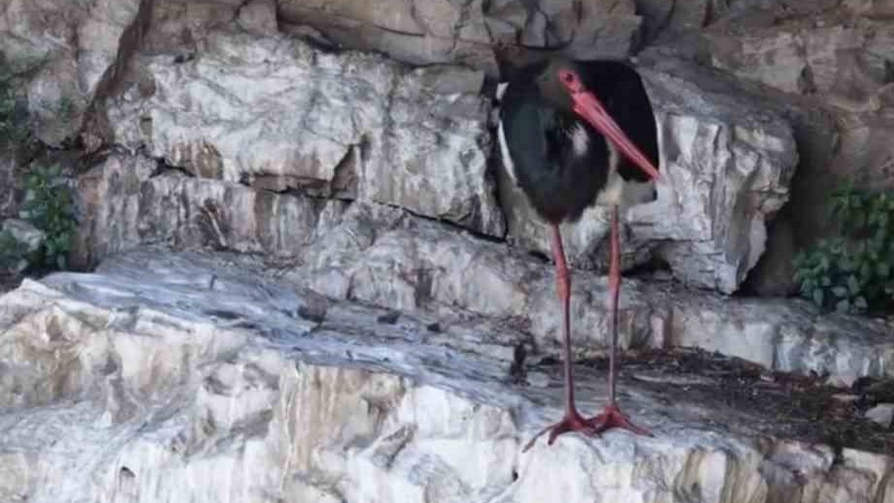 Artvin'in Ardanuç ilçesi Cehennem Deresi Kanyonu'nda kayalıklarda dinlenen kara leylek, dron kamerası ile görüntülendi.