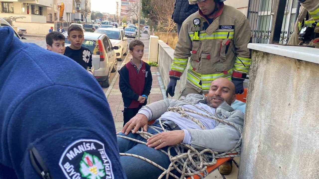 Düşmenin etkisiyle sol bacağı kırılan ve çatı üzerinde mahsur kalan Yener C.'nin yardım çağrısını duyan çevredeki vatandaşlar durumu hemen 112 Acil Çağrı Merkezi'ne bildirdi. İhbar üzerine olay yerine kısa sürede sağlık, polis ve Manisa Büyükşehir Belediyesi İtfaiye Dairesi Başkanlığı ekipleri sevk edildi. Çatıya çıkan itfaiye erleri, yaralı vatandaşı dikkatli bir şekilde sedyeye sabitledi. Yaklaşık yarım saat süren titiz çalışmanın ardından yaralı şahıs, ipler ve sedye yardımıyla güvenli bir şekilde aşağı indirildi. Olay yerinde hazır bekletilen sağlık ekiplerince ilk müdahalesi yapılan Yener C., ambulansla Manisa'daki bir hastaneye sevk edildi. Hastanede tedavi altına alınan adamın sağlık durumunun iyi olduğu öğrenildi.