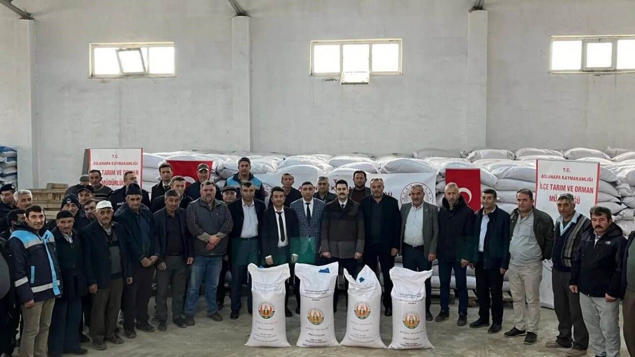 Aslanapa Kaymakam Vekili Abdullah Gedik, İlçe Tarım ve Orman Müdürü M. Alptuğ Tekeli ve ilçe protokolünün katıldığı tohum dağıtım töreninde 386 çiftçiye Tarım Arazilerinin Kullanılmasının Etkinleştirilmesi Projesi (TAKEP) çerçevesinde Tarım ve Orman Bakanlığı kaynaklı yüzde 50 hibeli Nacibey cinsi 65 ton 550 kilo ekmeklik buğday tohumu dağıtımı gerçekleştirildi.
