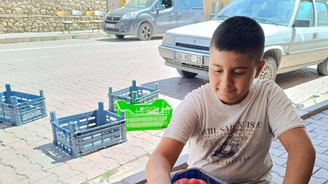 Tunceli’nin Çemişgezek ilçesinde 12 yaşındaki Yunus Emre Akın, yerli ata tohumu pembe domatesleri satarak okul harçlığını çıkarıyor.