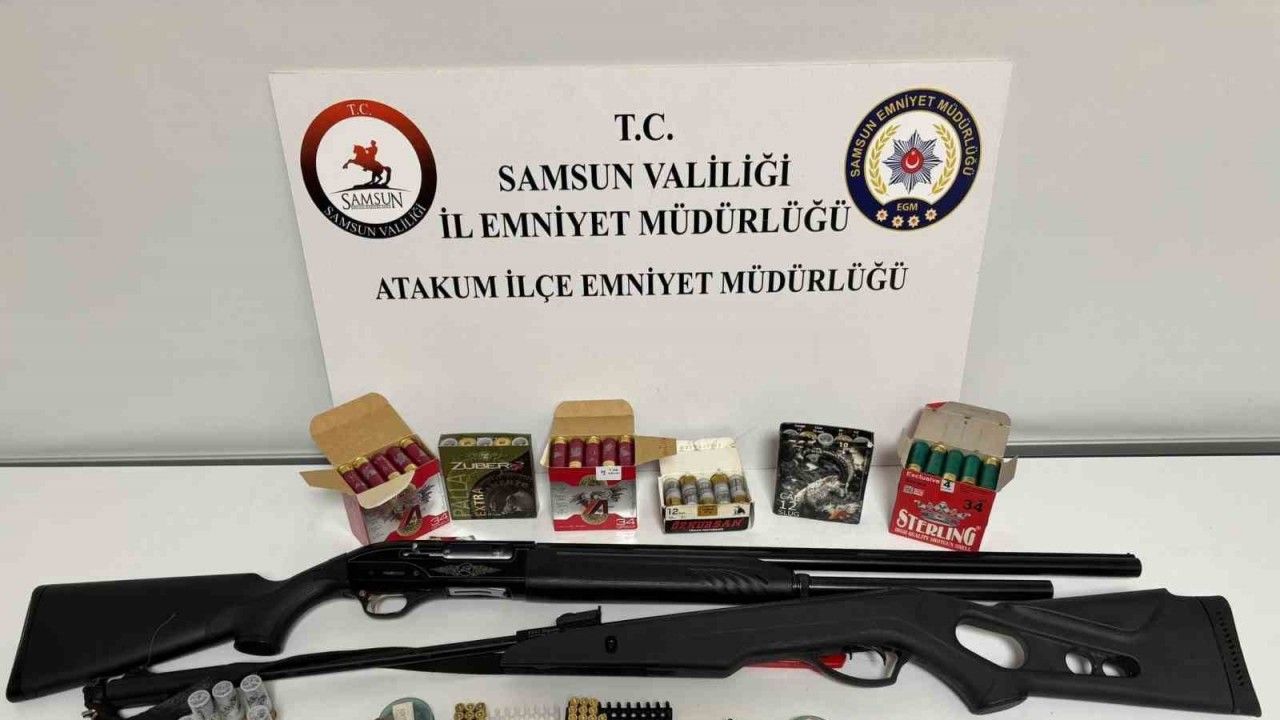 Atakum İlçe Emniyet Müdürlüğü ekiplerince bir ikamete düzenlenen operasyonda 1 adet ruhsatsız tabanca, 2 adet kurusıkı tabanca, 1 adet ruhsatsız tüfek, 1 adet havalı tüfek, 15 adet 7x65 tabanca fişeği, 17 adet 9x19 tabanca fişeği, 114 adet tüfek kartuşu, 18 adet kurusıkı fişeği ve 2 paket havalı tüfek saçması ele geçirildi. Olayla ilgili gözaltına alınan zanlı S.T. (66) hakkında işlem başlatıldı.
