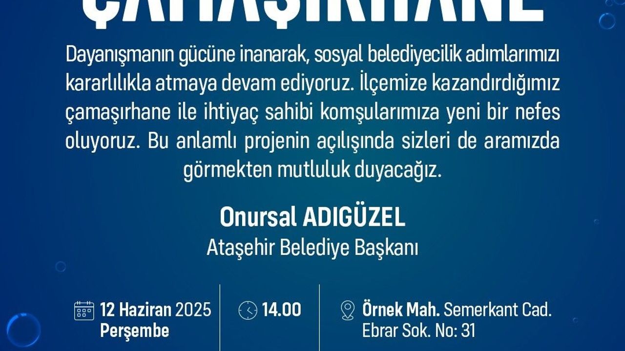 Ataşehir Belediyesi, ihtiyaç sahibi vatandaşlar ve ilçede yaşayan üniversite öğrencileri için ücretsiz "Çamaşırhane" hizmetini hayata geçirdi.