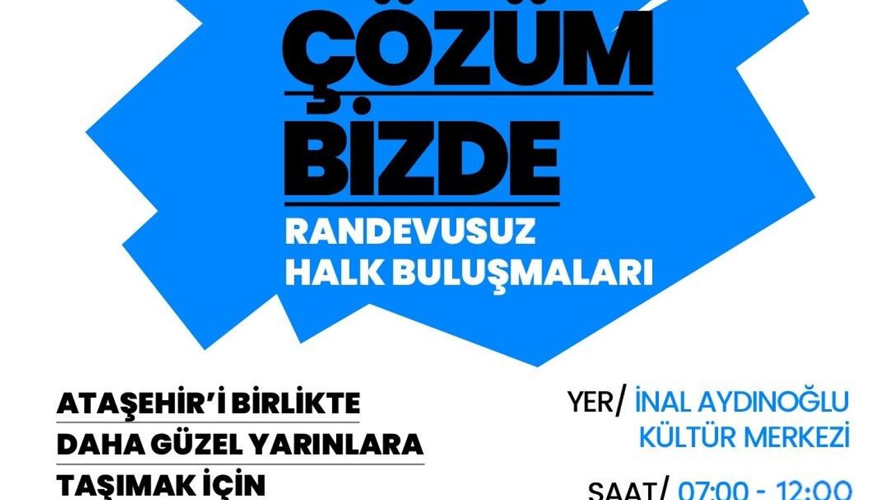 Ataşehir Belediyesi, vatandaşların görüş ve taleplerini dinleyerek ortak çözümler üretmek amacıyla "Söz Sizde, Çözüm Bizde" sloganıyla randevusuz halk buluşmaları düzenliyor. İlk buluşma, 10 Şubat Pazartesi günü saat 07.00’de İnal Aydınoğlu Kültür Merkezi’nde başlayacak ve saat 12.00’ye kadar sürecek. Ataşehir Belediye Başkanı Onursal Adıgüzel’in, başkan yardımcıları ve ilgili birim müdürleri ile tam kadro yer alacağı halk buluşmalarında vatandaşlarla bir araya gelinip talepler dinlenecek.