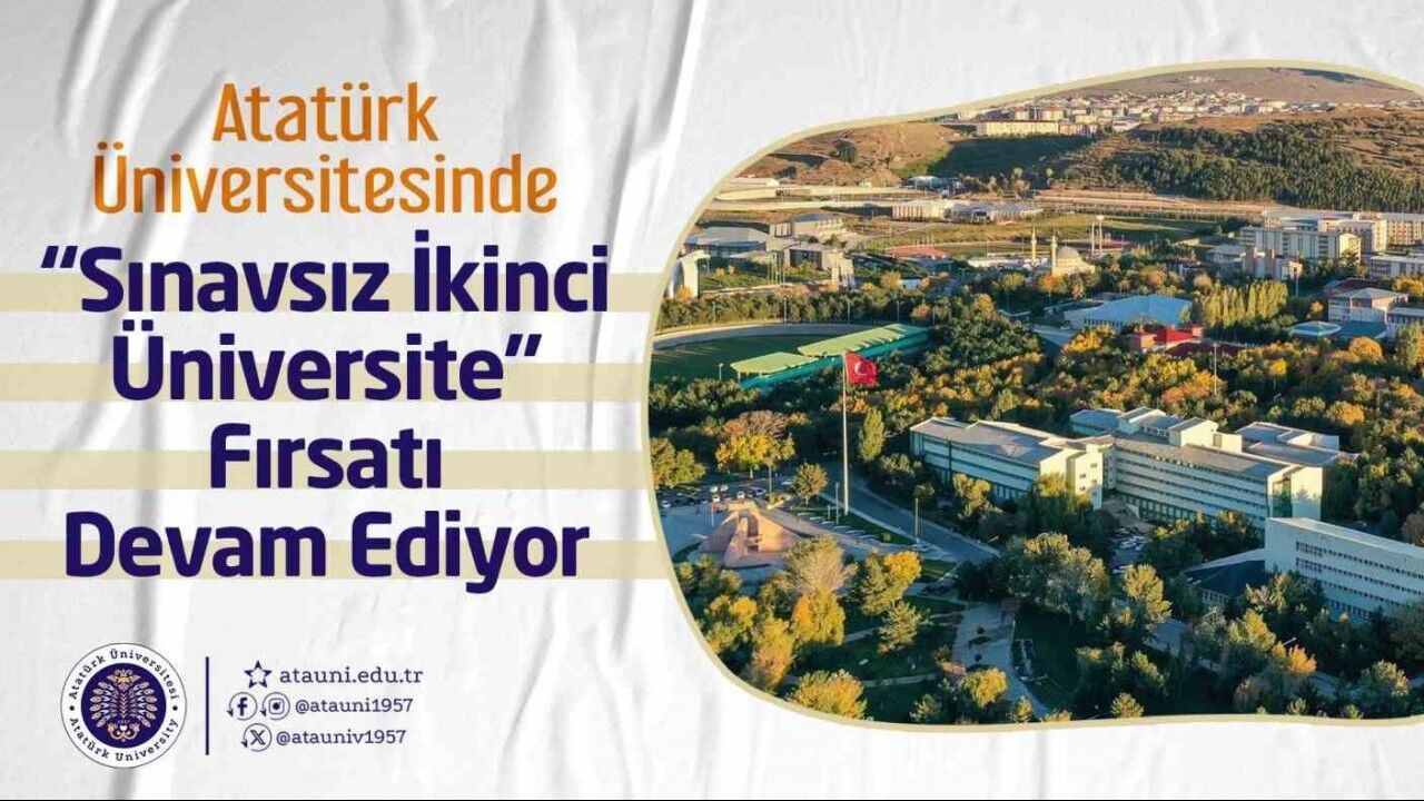 Atatürk Üniversitesi, öğrencilerine ve mezunlarına kariyerlerini güçlendirecek yeni bir imkân sunuyor. "Sınavsız İkinci Üniversite" uygulaması kapsamında, farklı alanlarda ikinci bir diploma sahibi olmak isteyenler için başvuru ve kayıt süreci devam ediyor.