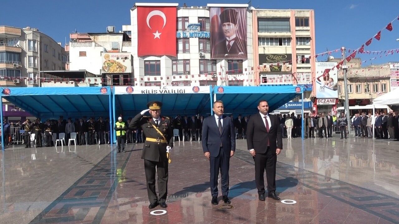 Cumhuriyet Meydanı’nda Atatürk Anıtı’na çelenk sunulmasıyla başlayan törende, saygı duruşunda bulunulup İstiklal Marşı okundu. Törende, Kilis 7 Aralık Üniversitesi Dr. Öğretim Üyesi Mehmet Bozaslan tarafından Mustafa Kemal Atatürk’ün 28 Ekim 1918’de 7. Ordu Komutanı olarak Suriye üzerinden Kilis’e gelişi anlatıldı.
